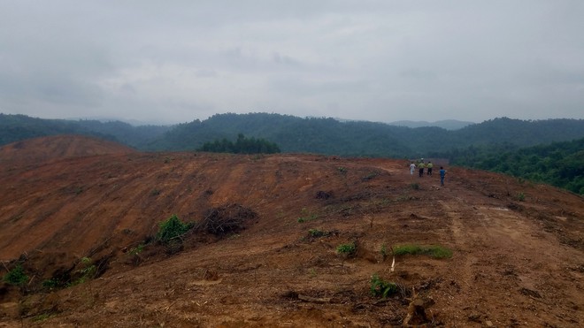 Đặc biệt là ở khu vực dãy đồi ngay bên cạnh, hiện cũng thuộc đất rừng phòng hộ mấy năm trước còn là rừng tự nhiên dày đặc, nay đã chỉ thấy cây keo tràm mới trồng lại tầm hơn tháng tuổi.