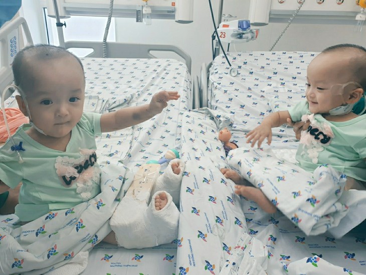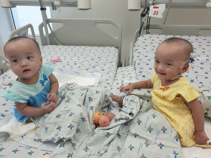 Cặp sinh đôi Trúc Nhi - Diệu Nhi dần hồi phục, ngồi bóc quà của 'fan', lắc lư theo điệu nhạc Baby Shark