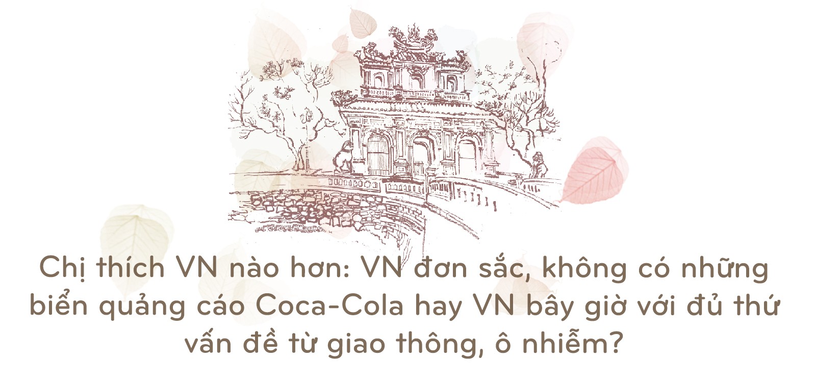 Có phải nó bắt đầu từ việc tôi phải rời Hong Kong năm lên 10 tuổi - điều rất khó khăn với tôi. Tôi luôn có cảm giác hoài niệm rất nhiều. Cả gia đình tôi cũng hoài niệm rất nhiều (về thời gian ở Hong Kong). Chúng tôi yêu những năm tháng đó. "Đó là những năm tháng vàng", họ luôn nói vậy. Tôi cảm thấy người Việt cũng có cảm giác hoài niệm và mất mát. Sự hoài niệm của họ rất mạnh.
