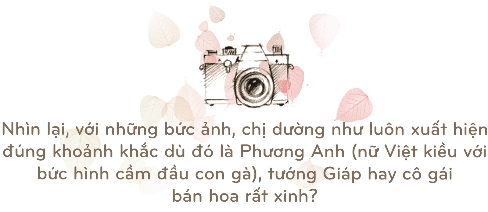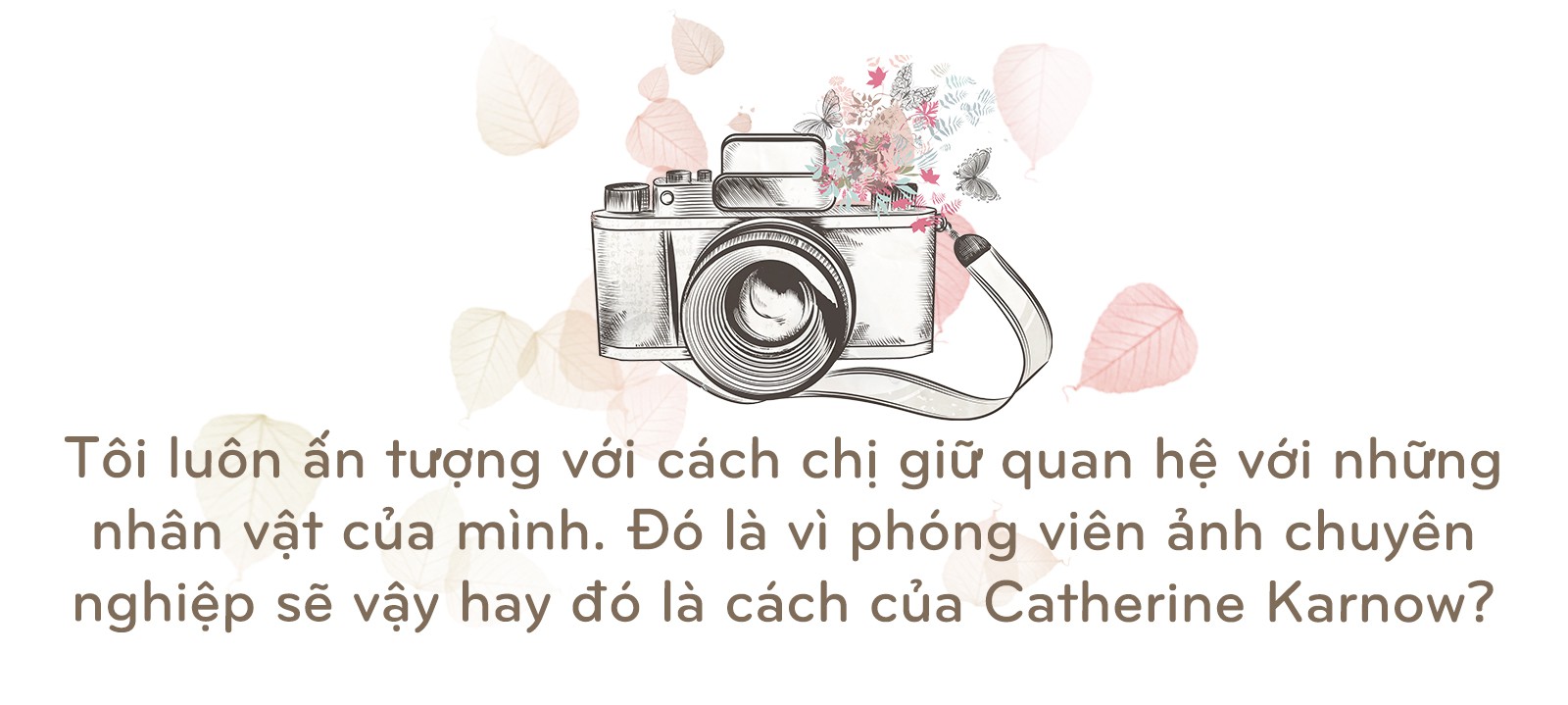 Đó là cách của tôi (cười). Nhiếp ảnh có thể làm gì? Đó vẫn là bí ẩn, tôi không thể giải thích. Tại sao tôi vẫn thấy hấp dẫn bởi công việc mà tôi đã làm từ năm 1975 cho tới giờ. Năm 1975 là năm có ý nghĩa với cả lịch sử VN và Mỹ, cũng là năm tôi cầm máy ảnh lên và quyết định sẽ nghiêm túc với nghiệp nhiếp ảnh. Tôi yêu nhiếp ảnh ngay khi đó. Làm thế nào tôi vẫn yêu thích nó đến vậy sau quãng thời gian dài thế, thật là điên khùng. Nên có gì đó rất bí ẩn về nhiếp ảnh.