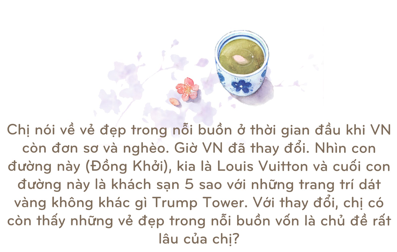 Đến khi tôi học được từ "buồn" ở VN, tôi bắt đầu thấy vẻ đẹp từ những nỗi buồn, từ những mất mát. Nó khiến bạn nhận ra thay vì chỉ buồn thì ta nhìn thấy vẻ đẹp trong chính những nỗi buồn đó.