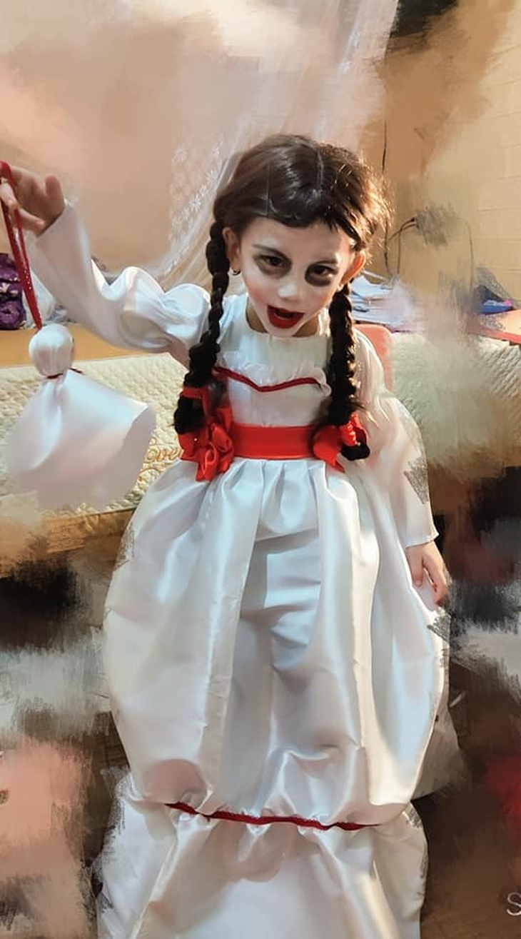 Ma "cúp bế" Annabella cầm thêm đồ chơi là linh vật cầu mưa cho nó... ngầu.Mới đây, một cậu bé 5 tuổi đã được mẹ "bóc phốt" với màn hóa trang thành Annabelle - "cúp bế" ma quái trong bộ phim cùng tên từng "hù" không ít khán giả. Thế nhưng với màn "biến tấu" này, chàng Annabella có vẻ gây cười nhiều hơn là "tạo nét" sợ cho đúng kịch bản gốc.