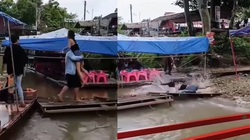 Cậu bé ngồi ăn liên tục bị chú chó 'đánh dấu' vào lưng