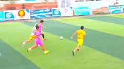 Đối diện khung thành trống nhưng sút không vào, cậu bé lập tức cởi áo rời khỏi sân vì không còn mặt mũi nào đá tiếp.
