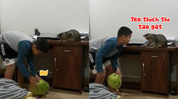 Cậu bé và chú vịt đang ngồi nghịch đống cát thì thấy ông chủ ra, liền bỏ chạy trối chết khiến nhiều người xem phì cười.