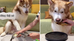 Chú chó tha tổ ong về nhà, báo hại cậu chủ bị đốt sưng mắt.