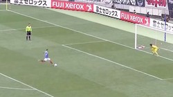 Sau khi lấy đà gần 10m, cầu thủ bắt đầu đi bộ lững thững rồi tung cú sút đưa bóng bay vọt ra ngoài.