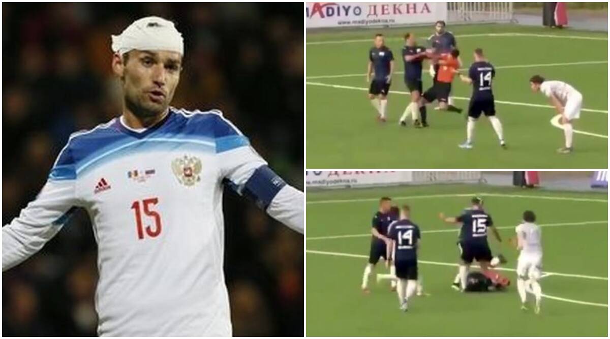 Đau cho ông trọng tài này khi chỉ bắt một trận đấu nghiệp dư ở thủ đô Moscow, nhưng lại dính chấn thương nặng từ một cựu cầu thủ chuyên nghiệp.