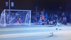 Trước khi thực hiện cú sút penalty, chàng cầu thủ châu Phi có màn nhún nhảy như muốn trêu ngươi thủ môn khiến khán giả phì cười.