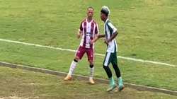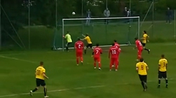 Sau khi dùng tay cản bóng như vận động viên bóng chuyền, cô gái tỏ vẻ bối rối vì nhận ra sai lầm của mình đã khiến đội nhà bị phạt quả penalty không đáng có.