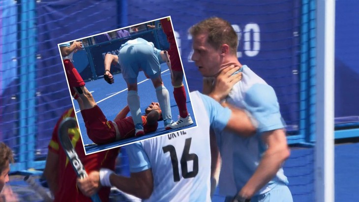 Trong trận đấu khúc côn cầu giữa Argentina và Tây Ban Nha ở Olympic Tokyo 2020, xô xát xảy ra ở những phút cuối. Khi tỉ số đang là 1-1, David Alegre (Tây Ban Nha) bị chuột rút nằm sân.