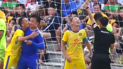 Chàng trai không giữ được bình tĩnh khi không lấy được bóng trong chân của đối thủ đã nổi đóa chơi xấu và bị trọng tài rút thẻ vàng.