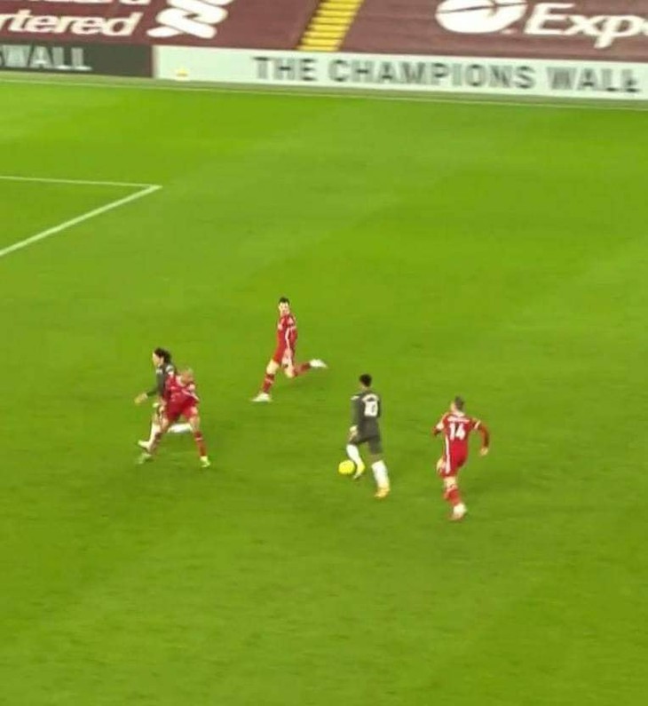 Bức ảnh chế hài hước về Cavani khi chứng kiến pha xử lý của RashfordBóng đến chân Marcus Rashford. Tiền đạo người Anh băng lên, cùng với Cavani tạo ra thế 2 đánh 2 với hàng thủ Liverpool.