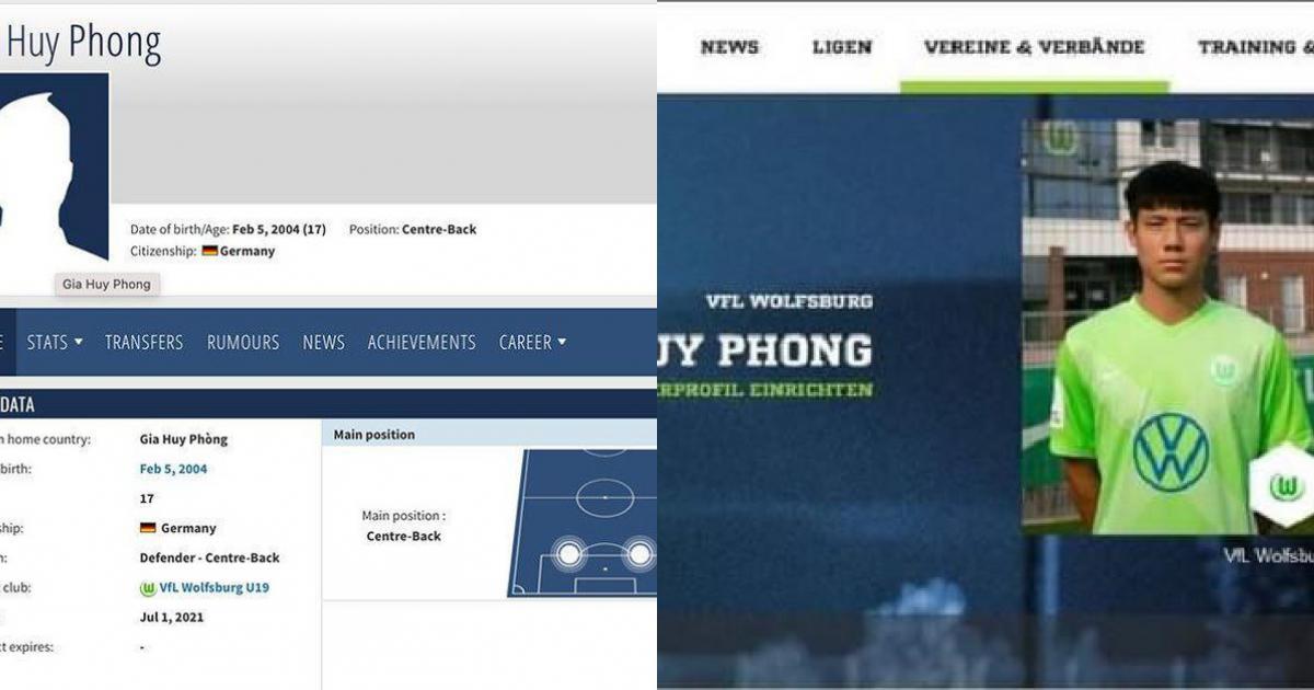 Thông tin ít ỏi về Huy Phong trên trang thống kê Transfermarkt.Huy Phong từng khoác áo các đội trẻ Wolfsburg vài năm trước. Anh được giới chuyên môn đánh giá cao vì vậy mới thăng tiến từ đội U15 lên U17 và bây giờ là U19.