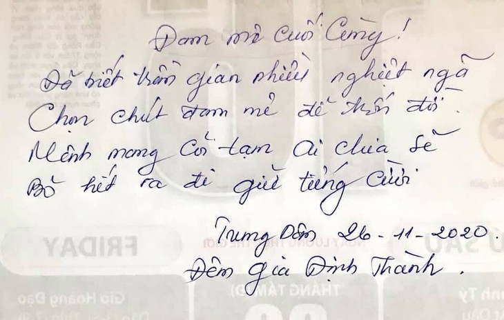 Tôi chợt nhớ cuối tháng 11 tôi có viết bài thơ ngắn lắm, chỉ bốn câu thôi nhưng không ngờ giờ lại thấy rất đúng với cuộc đời anh Tài.