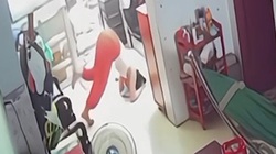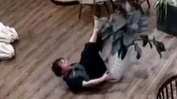 Chàng trai cắm đầu vào ghế khi trồng cây chuối