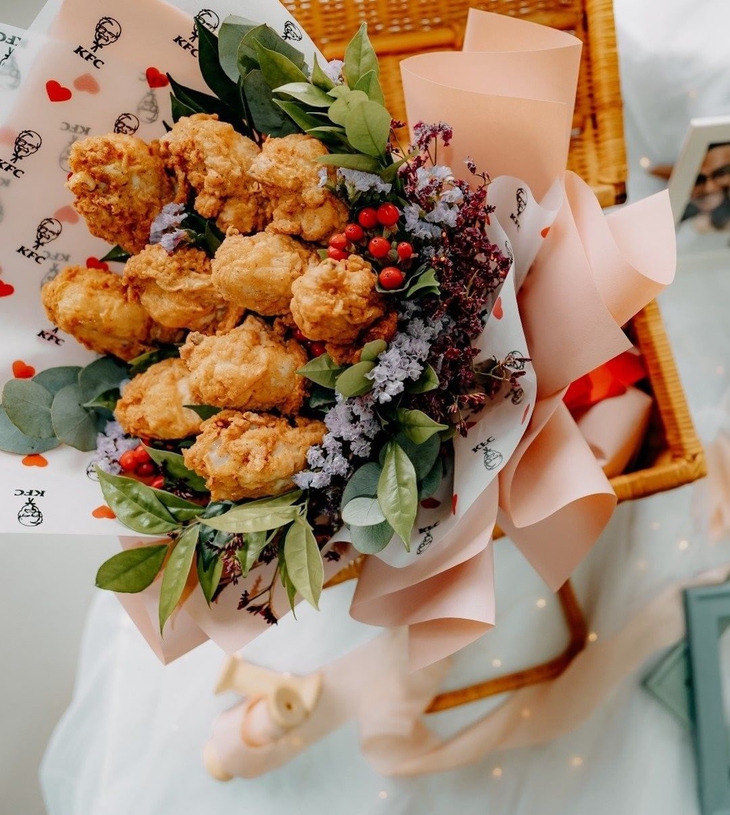 Chàng trai cầu hôn bạn gái 10 năm bằng 'bó hoa' gà rán