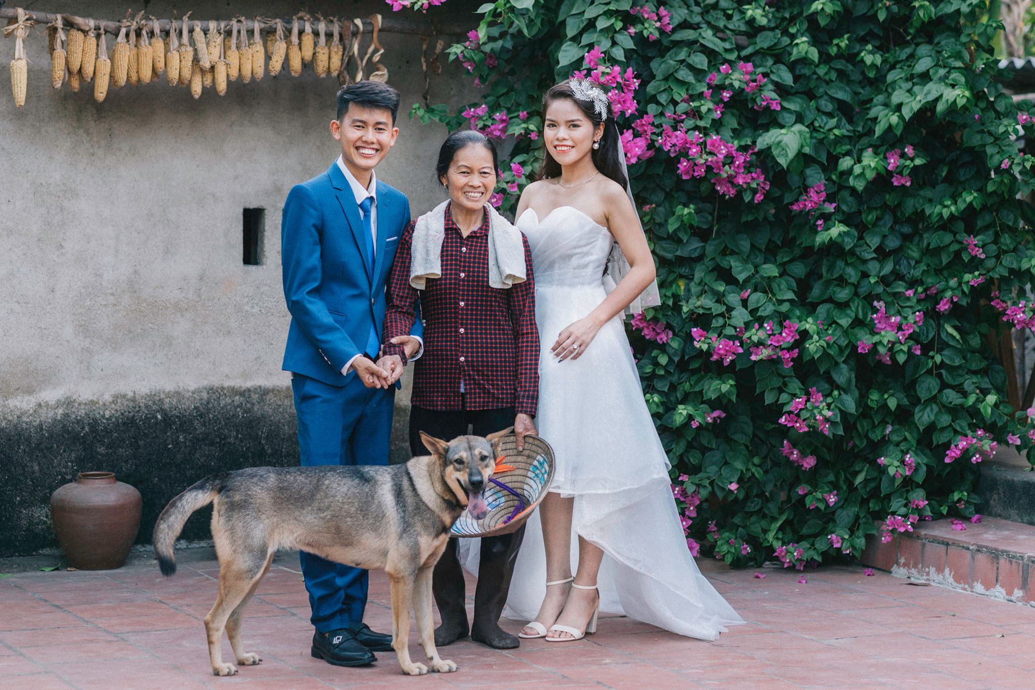 Trong bộ ảnh cưới, chú rể Văn Hùng và cô dâu Thanh Trà diện trang phục cưới tinh tươm, đối lập hoàn toàn với hình ảnh thường nhật của mẹ Dương Thị Cường.