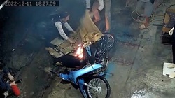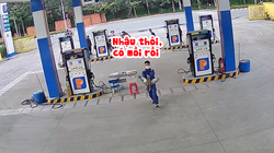 Thấy người lạ đi xe máy bị hết xăng giữa đường, chàng trai tốt bụng liền đổ lon nước đang uống dở để lấy xăng trên xe của mình đổ qua.