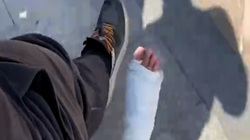 Chàng trai cười như được mùa khi thấy bạn thân xuống xe bị hụt chân và ngã sõng soài dưới hiên nhà.