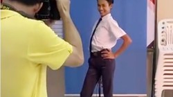 Chàng trai đeo mặt nạ trình diễn thời trang ngã sấp mặt xuống sân khấu