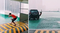 Chàng trai đi dép tông xuống cầu thang nhanh như chớp