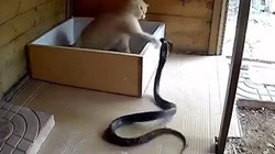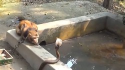 Chàng trai giội nước tắm cho rắn hổ mang chúa