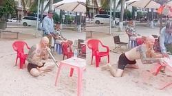 Chàng trai đứng không vững vì say thuốc lào