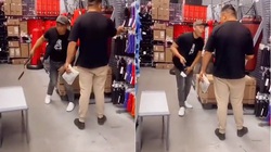Thấy cô gái mặc váy ngắn đi dạo, chàng trai vội quăng chổi chạy vào nhà gọi hai thằng bạn thân ra ngắm người đẹp được cánh mày râu gật gù khen 'đúng là có phước cùng hưởng'.