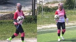 Với phong cách đá chỉ nhìn người không cần nhìn bóng, chàng trai đã có màn khóa chặt cầu thủ đối phương như hình với bóng.