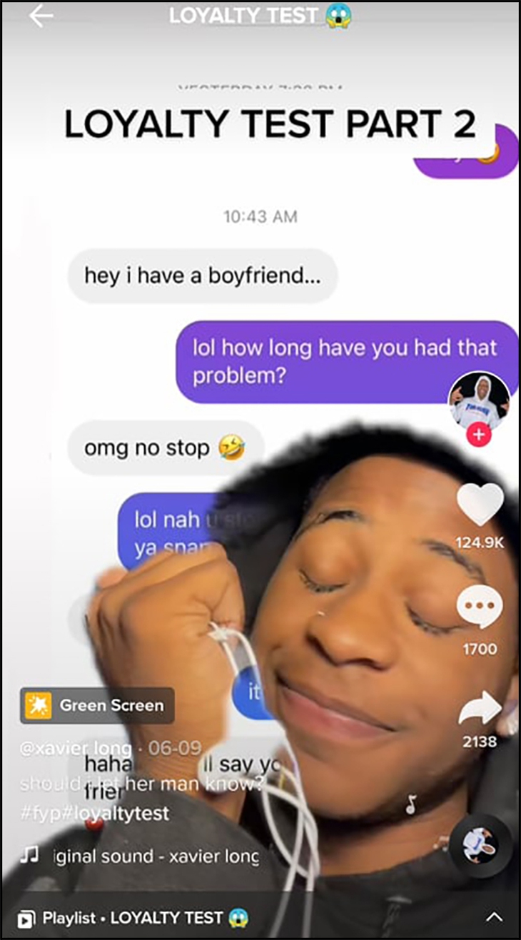 Xaviar Long (20 tuổi) đến từ Yerkwood (Alabama, Mỹ) - là chủ tài khoản @iceyxavier1 trên nền tảng TikTok. Từ tháng 6-2021, anh chàng nổi lên như một hiện tượng khi đăng tải đến 170 video với nội dung "kiểm tra lòng chung thủy cặp đôi", đem về gần 1 triệu lượt xem và hàng trăm ngàn lượt yêu thích.