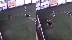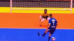 Sau khi lừa qua thủ môn, chàng trai đuối sức không rượt theo kịp và để bóng lăn hết đường biên ngang.
