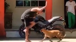 Chàng trai ngồi buồn ở vỉa hè bị chú chó đến tè vào lưng khiến nhiều người xem không nhịn được cười.