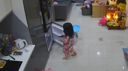 Thấy chú chó trong nhà chạy ra, chàng trai tưởng lao đến cắn mình, vội nhảy lên tủ kính ngồi làm cửa kính vỡ toang.