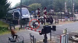 Thấy đoàn tàu cao tốc đang lao tới, anh Nguyễn Duy Tân (30 tuổi, quê ở Khánh Hòa, đang làm việc ở Nhật Bản) vội chạy đến cứu cụ ông bị ngã xe đạp, nằm trên đường ray thoát chết trong gang tấc.