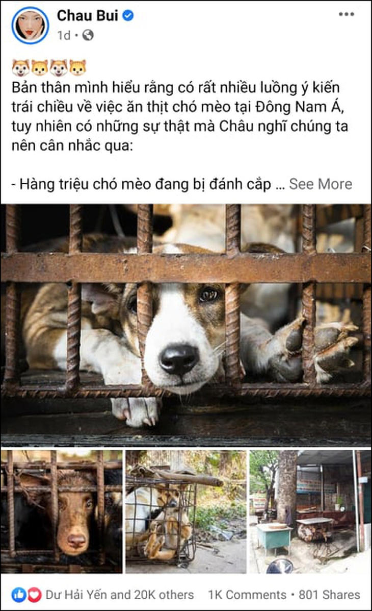 Mới đây, Châu Bùi bất ngờ bị dân mạng "réo tên" không phải vì drama với tình cũ hay với cả tình mới, mà là trong một cuộc chiến không hồi kết "ăn thịt chó". Cô đăng đàn trên trang fanpage của mình một bài viết, đưa ra những dẫn chứng cho việc nên dừng ngay việc ăn thịt chó ở nước ta.
