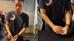 Cháu gái cầm chiếc đũa giả vờ làm ảo thuật đưa vào miệng khiến bà tưởng thật vỗ tay khen ngợi.