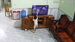 Người bố được một phen hú hồn hú vía khi con gái lấy bật lửa đốt thùng rác cháy giữa phòng khách.