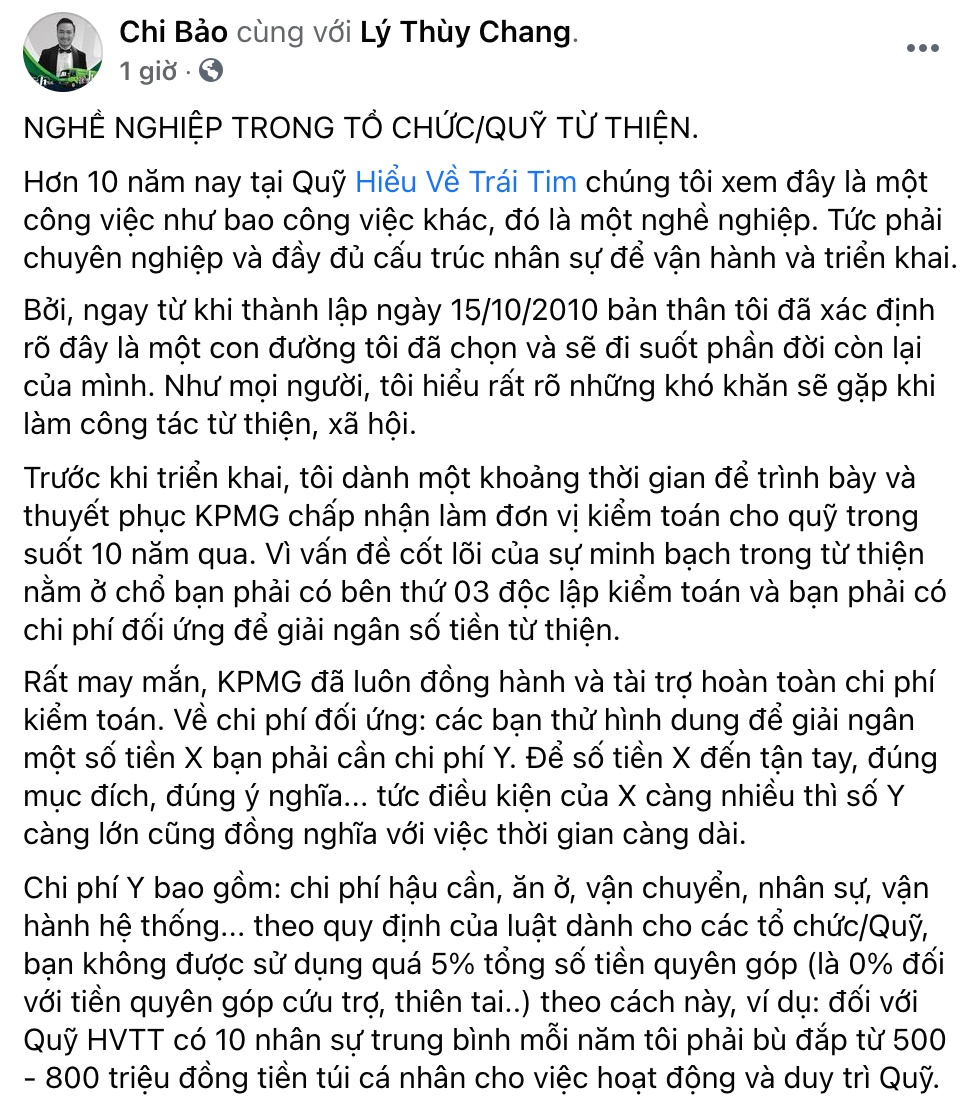 Chi Bảo khuyên nghệ sĩ bảo vệ mình trước khi làm từ thiện