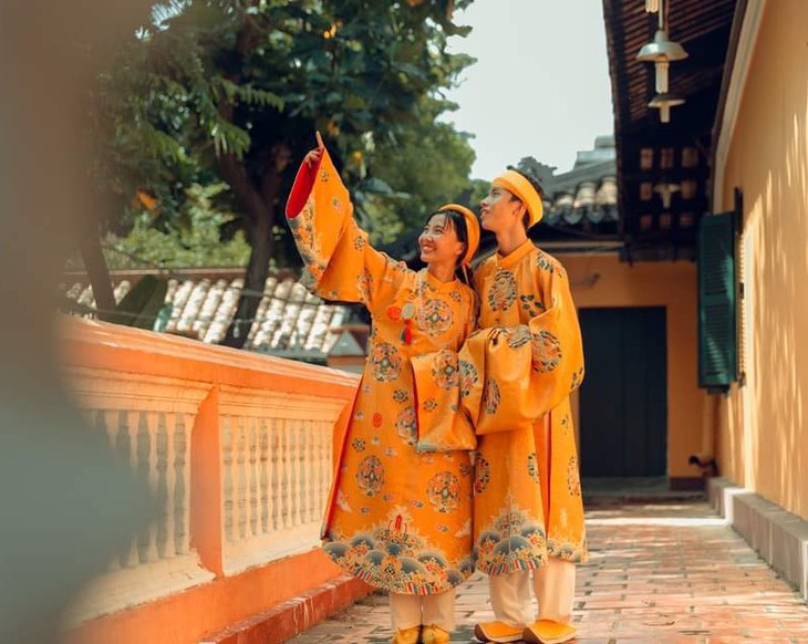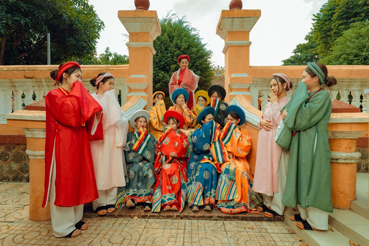 Dựa trên phông nền lịch sử triều Nguyễn, từng bộ cổ phục Việt khi được hoàn thiện đã rất chỉn chu ở đường kim mũi chỉ, hoa văn thêu lẫn những món phụ kiện đi kèm. Không những thế, vì sợ bị “ném đá” nên lớp cũng kiểm tra kỹ lưỡng các bộ cổ phục – bởi đã xác định đây chính là hồn cốt của khung hình kỷ yếu.