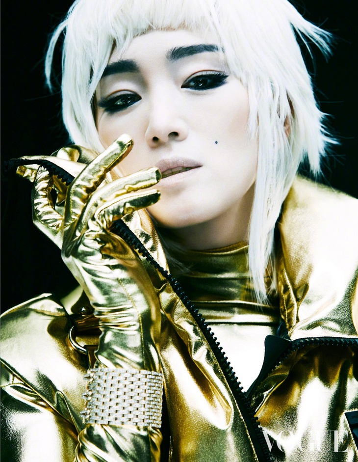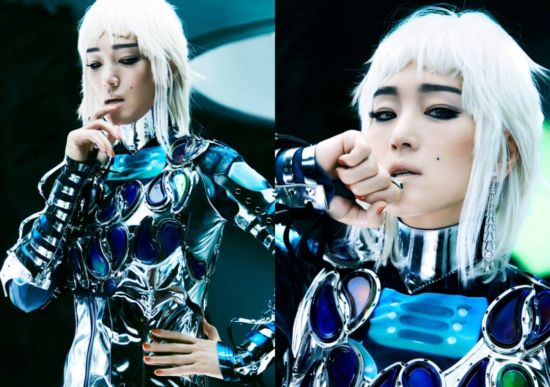 Củng Lợi đầy lạ lẫm trong loạt hình mới.Ở tuổi 55, Củng Lợi vẫn cho thấy thần thái siêu đỉnh trong mái tóc màu bạch kim cá tính và trang phục phi hành gia. Được biết, người thực hiện cảnh quay này là Phùng Hải, người bạn thân hợp tác nhiều năm của Củng Lợi.