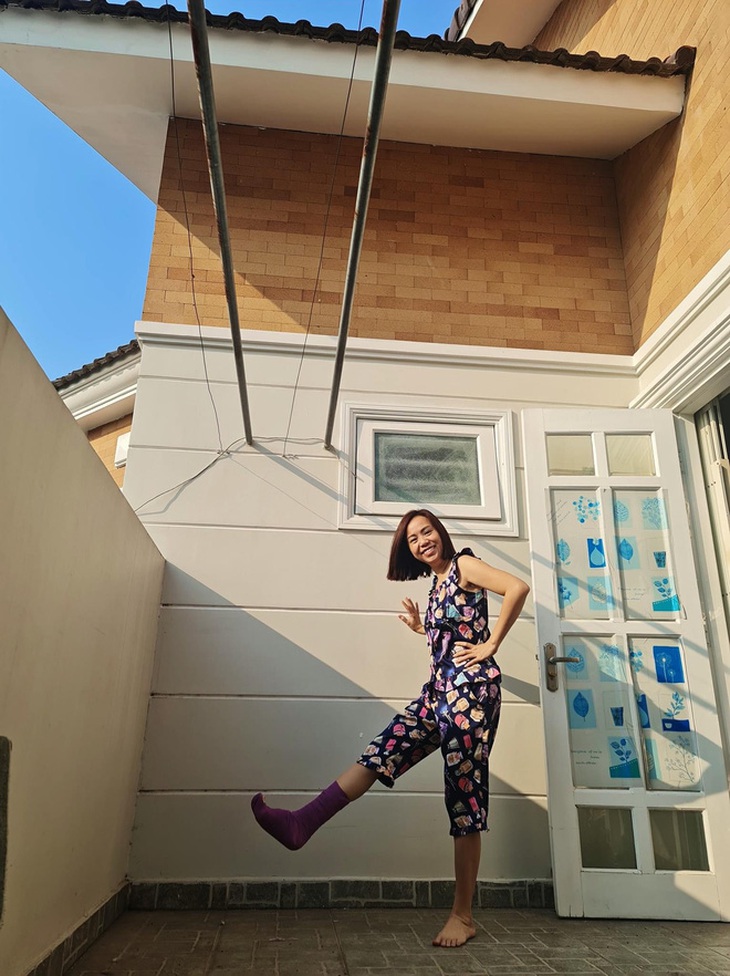 Vướng vào tình cảnh... hỡi ôi một cách hi hữu, 'chị đẹp' Bình Minh vẫn toát lên một nguồn năng lượng tích cực. Thay vì rầu rĩ vì đau đớn, chị Minh lựa chọn cho mình một nụ cười thật tươi, đón nhận sự bất tiện bằng những cách đối phó thú vị, không kém phần rực rỡ.