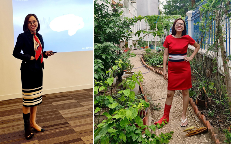 Như việc đi giày, dù phải "dùng thìa nhét ngón chân vào, đau nhảy dựng lên" nhưng vốn đam mê "cái đẹp" nên chị dặn chồng mua cuộn băng gạc nhiều màu sắc về băng cho... đẹp. Tuy nhiên, anh chồng lại tìm không ra những cuộn băng gạc nhiều màu sắc, nên chị "phụ trách" luôn phần "mò" trên các trang thương mại điện tử để đặt mua.