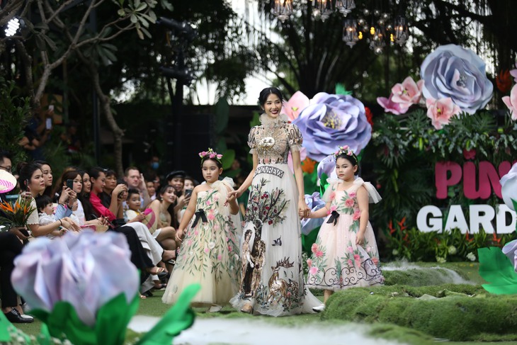 Màn xuất hiện "không hẹn trước" của chị em ca sĩ Cẩm Ly và Minh Tuyết tạo cảm xúc thú vị khi cùng xuất hiện trong bộ sưu tập mở màn cho Pink Garden show. Đặc biệt, các em mẫu nhí vô cùng hào hứng khi được catwalk cùng hai ngôi sao đình đám của Vpop. Theo đó, Cẩm Ly và Minh Tuyết cùng diện thiết kế họa tiết hoa hồng của bộ sưu tập Rose & Child của NTK trẻ Tuấn Trần và cùng nắm tay 'dạo bước' trên sàn runway của Pink Garden show.
