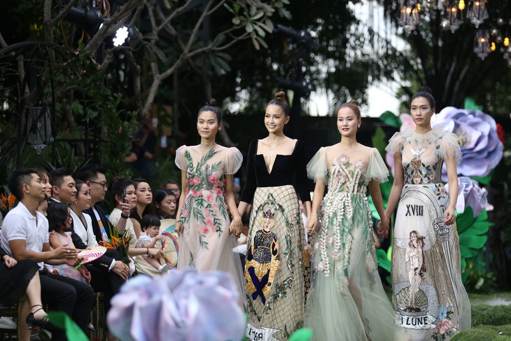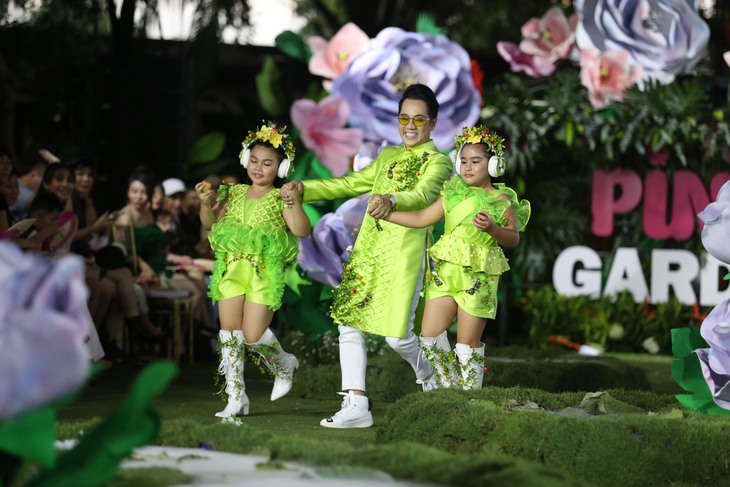 Dàn nghệ sĩ tên tuổi: Lê Khánh, Nguyệt Ánh, Vân Trang, Khả Như, Anh Đức, model Sơn Đặng, Thuận Nguyễn, Lương Bích Hữu, Lâm Bảo Châu được "trở về tuổi thơ" hồn nhiên trong trẻo khi trình diễn bộ sưu tập Khu vườn của ba của nhà thiết kế Quân Phan.