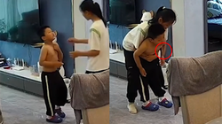 Sau pha đỡ em, chị gái bị đau tay vì va vào khung võng nhưng vẫn nén đau, không kêu la.