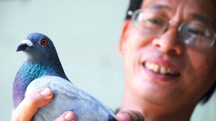 TTCT - Một ngày đẹp trời giữa tháng 4, người dân vùng biển Vĩnh Châu (Sóc Trăng) bỗng thấy một nhóm người chở chim bồ câu từ Sài Gòn tới. Họ đến bờ biển, ngắm nghía quang cảnh rồi mở lồng cho từng chú bồ câu bay ra. Dân trong vùng kháo nhau “chắc là thả chim hòa bình đây mà!”. Nhưng không, họ đang thả chim để... đua. “Chiến binh xám trống” của Sò Phúc về nhất trong cuộc đua đường dài Sài Gòn - Đà Nẵng - Ảnh: Hoàng Thạch Vân Nhóm thả chim đó thuộc Hội Bồ câu đua quận 8 (TP.HCM). Hội trưởng Lê Khai Đông cho biết đây là đợt tập dượt trước khi bước vào cuộc đua chim vượt biển mang tên Cúp Thống Nhất chào mừng 30-4 năm nay, chặng Côn Đảo - Sài Gòn dài 225km. Cuộc đua “bầm mình” Có tổng cộng 201 chiến binh thuộc 93 căn cứ tham gia cuộc đua vượt biển Côn Đảo - Sài Gòn dài 225km, Cúp Thống Nhất chào mừng lễ 30-4 do Hội Bồ câu đua quận 8 tổ chức lúc 7g05 ngày 21-4-2012 tại Côn Đảo. Kết quả có 90 chiến binh về đích (kết sổ sau ngày thứ ba của cuộc đua) với thành tích thuộc về các căn cứ sau: 1 - Hùng Chảy (Q.6) 4g03'15", 2 - Hùng Chảy (Q.6) 4g08’46”, 3 - Nam Trần (Q.5) 4g10’38”. Sau khi ngắm nhìn đàn chim chao liệng một vòng rồi bay đi mất hút, nhóm thả chim vội vã lên xe về Sài Gòn. “Để đón chim quay về chuồng, coi chiến binh nào về trước là thắng cuộc” - nài Ty, thành viên trong nhóm, giải thích. Trong một cuộc đua, chim đua được gọi là “chiến binh”. Điểm xuất phát là một nơi ở xa bất kỳ, đoạn đường đua tùy theo cự ly sẽ từ 200-600km đường chim bay, đích đến là chuồng chim, thường được gọi là “căn cứ”. Khi chim về căn cứ, chủ chim phải nhanh chóng mở kiềng (đeo trên chân chim) ra, cào lấy mã số trên kiềng rồi nhắn tin về máy của ban tổ chức để được xếp hạng theo thứ tự. Trước ngày đua chừng một tháng, ban tổ chức đưa ra quy định về cự ly chặng đua, ngày đăng ký, số lượng chiến binh và căn cứ tham gia, chi phí đóng góp, thành phần trọng tài (thường gọi là nài), lịch tập dượt, cơ cấu giải thưởng, trong đó có cúp, cờ, giấy chứng nhận. Nhưng quan trọng nhất và ly kỳ nhất là hành trình gian khổ mà các chiến binh phải trải qua. Anh Ngô Vĩ, thành viên Hội Bồ câu đua quận Tân Phú (TP.HCM), cho biết: “Lúc xuất phát, các chiến binh phải định hướng được đường về của mình thật chính xác, từ đó có lộ trình bay phù hợp, sao cho tuyến đường ngắn nhất, ít tốn sức nhất và ít gặp nguy hiểm nhất. Muốn đạt được kỹ năng đó, các chú chim phải trải qua quá trình huấn luyện thật bài bản để có khả năng nhận biết nhà mình. Và điều hết sức quan trọng là khả năng chống chọi với chim cắt, diều hâu và cả thợ săn trên đường đua”. Trở lại cuộc đua tập dượt Sóc Trăng - Sài Gòn vừa kể, nhóm anh Đông vừa về tới Sài Gòn thì có ngay tin báo 10 chiến binh (trong tổng số 80) đã về căn cứ. Từ đó đến tối hôm sau có lác đác hơn 20 chiến binh quay về. Sang ngày thứ ba thì các chiến binh về gần đủ, chỉ thiếu chừng sáu chú. Điều đáng chú ý là trong số về trễ này có ba chú trong tình trạng thất thểu, bộ dạng yếu ớt, đặc biệt là thân thể dính đầy máu. Anh em xót xa xúm lại xem thì thấy trên mình các chiến binh có vết cào xước của móng vuốt chim cắt hoặc diều hâu. Có chú bị rách bầu diều một đường dài, chú khác thì cánh có vết cào dài tới sống lưng. Đau đớn hơn cả là một chú bị ghim ba viên đạn súng săn. Thường những chú chim bị thương như vậy đều được xem như vĩnh viễn giã từ sự nghiệp trên đường đua, giống như vận động viên bị chấn thương nặng. Các chú chỉ còn được giữ lại để làm “bổn” (giống) để nhân ra những chiến binh hậu duệ. Vì cuộc đua gian khổ hiểm nguy như vậy nên chim đua được gọi “chiến binh” cũng là phải lẽ. Anh em hội viên hội nuôi chim bồ câu xem phong độ các chiến binh về đích - Ảnh: H.T.V. Công phu khổ luyện Sau chuyến đua tập ít hôm, chúng tôi ghé nhà anh Đông trên đường Dã Tượng (quận 8), nơi làm điểm gặp mặt của cả hội. Trên bancông tầng 1 là dãy chuồng nuôi bồ câu được làm vệ sinh sạch sẽ, chia ra nhiều ngăn có cửa riêng, nuôi từng lứa bồ câu từ mới nở, “ra ràng” tới tập bay và đạt chuẩn chiến binh. Dù vậy, căn cứ của anh Đông cũng thuộc dạng bình dân. Có người trang bị hệ thống chuồng hiện đại như anh Tô Văn Phát ở quận 8, anh Trương Diệu Huy ở quận Tân Phú. Hễ đúng 7g sáng là cửa chuồng tự động mở cho chim bay ra ngoài, đúng 8g là máng ăn tự bật cho thức ăn đổ xuống. Thậm chí anh Huy còn cài thiết bị ghi nhận chim bay tập về là lập tức chuông đổ và có ngay tin nhắn báo về điện thoại. Thức ăn cho chiến binh cũng khác. Thường thì ta nói ngũ cốc nhưng thực tế tới gần “thập cốc” gồm bắp, hướng dương, mè đen, lúa, các loại đậu... và đặc biệt không thể thiếu chất khoáng (đất sét và cát). Nơi cửa chuồng