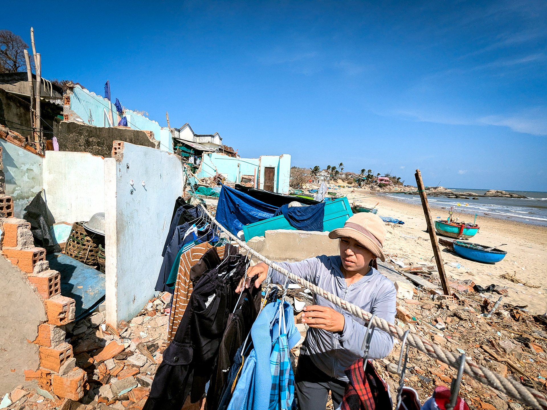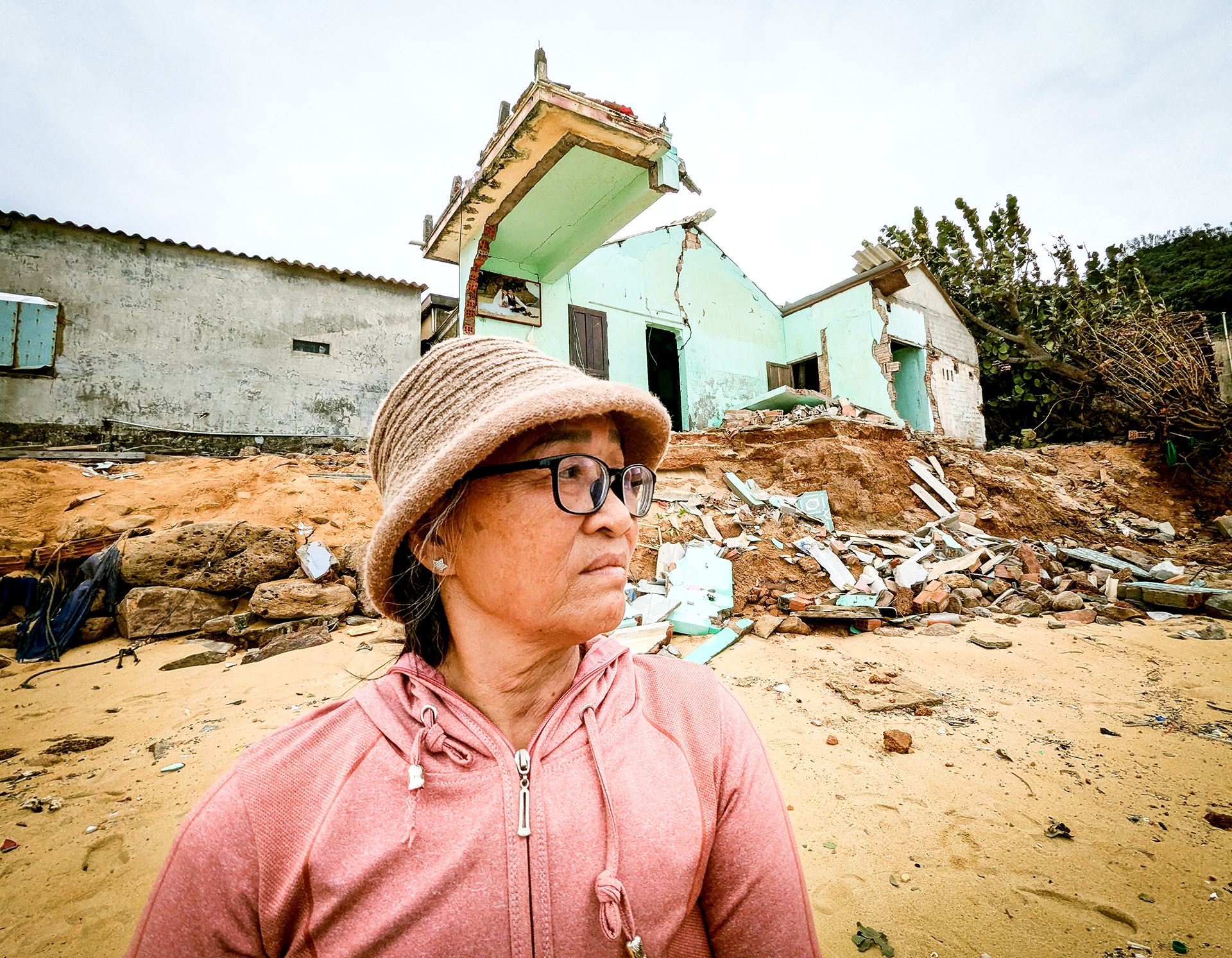Những ngôi nhà gành biển thôn Xuân Thạnh, xã Phù Mỹ Đông, Gia Lai, bị sóng biển đánh sập hàng loạt trong bão - Ảnh: TẤN LỰC