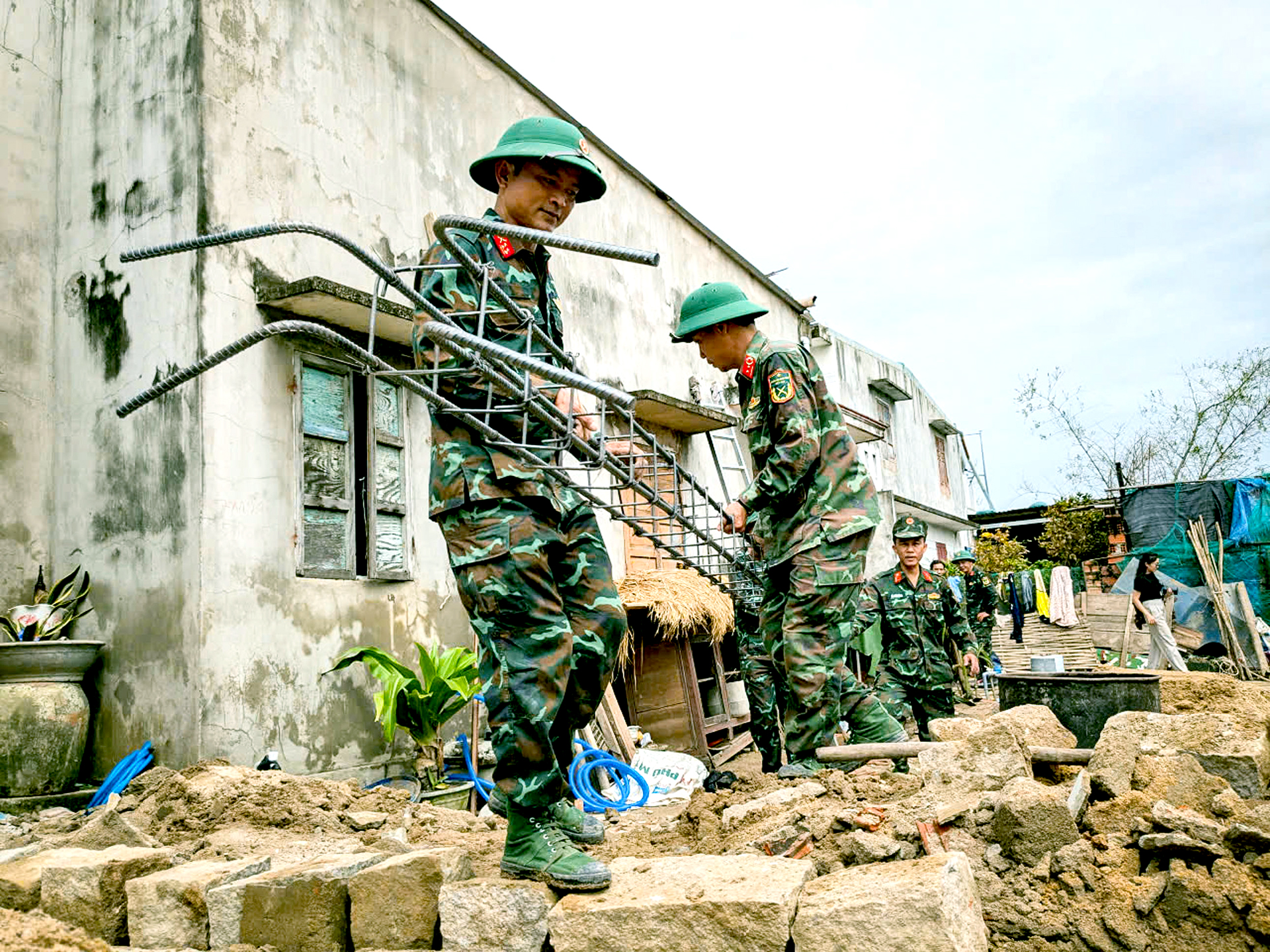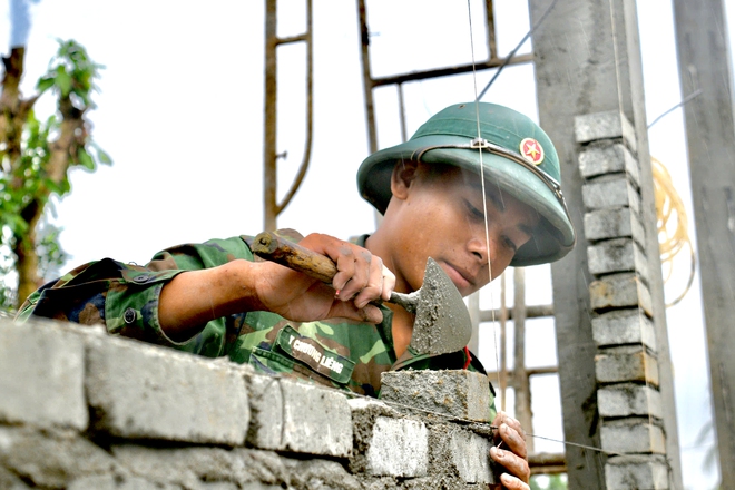 Bộ đội về dọn mặt bằng, san ủi đất, dựng lều dã chiến nhường cho dân vào ở ổn định. Sau khi thống nhất với địa phương về danh sách nhà, thủ tục pháp lý, từng vị trí nhà dân được bộ đội cắm cọc bắt đầu đào móng đặt những viên gạch đầu tiên.
