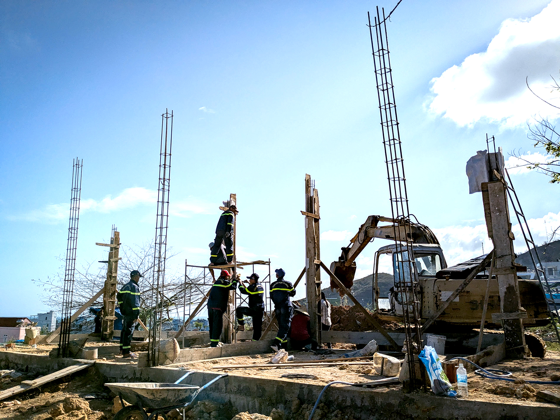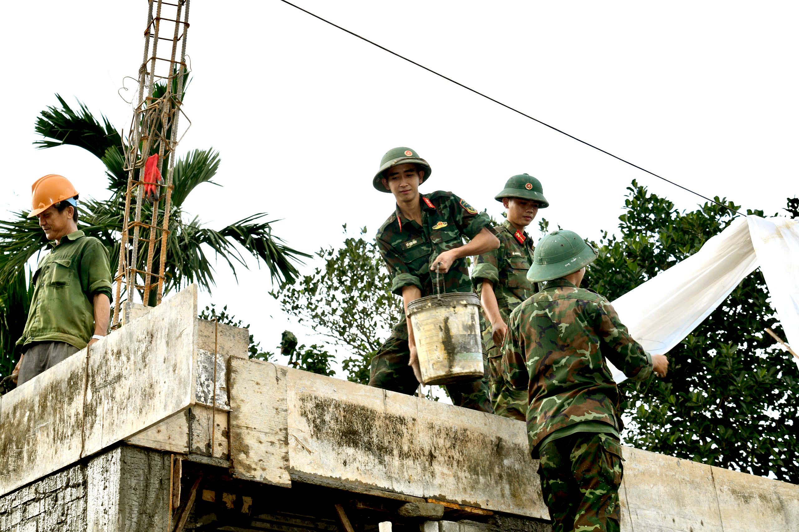 Tại khu phố Hải Bắc, phường Quy Nhơn Đông, Gia Lai (xã Nhơn Hải, TP Quy Nhơn, Bình Định cũ), các chiến sĩ trẻ thuộc Phòng Cảnh sát phòng cháy chữa cháy và cứu nạn cứu hộ, Công an tỉnh Gia Lai, lăn lộn cùng đội thợ xây lại những ngôi nhà tái định cư vùng thiên tai.